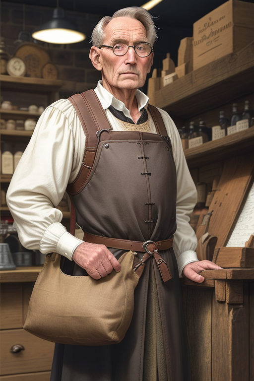 Пожилой забывчивый мужчина, продаёт пайки, палатки, котелки и прочие вещи для похода, а также экипировку для ездовых животных.